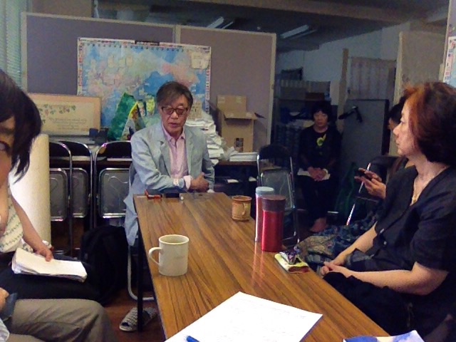 ミッション祈祷会。牧師の杉澤さん、黒一点!