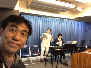 会堂へ到着! ウラノスの皆さんが練習中です。