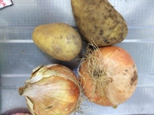 父が作った玉ねぎとじゃがいもで今晩のメニューは、カレーライス☺︎