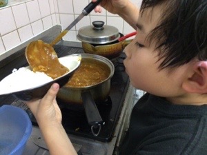 再び、二人のお父さんたち。 2人とも夕飯の事を考えてます。