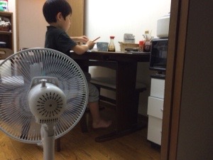 多分夏を過ぎてもpeterさんのために回り続ける扇風機! 今は息子を涼ませてくれています。
