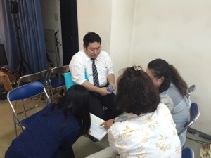 引き続き、同じ場所でお仕事中。 今度は明日の神学校の準備です。