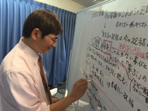 メッセンジャーの窪田さん、白板にメッセージの準備中です。