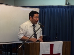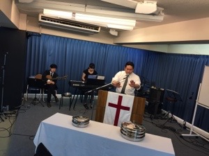 聖餐式の時。 真境名お父さんが導きます。