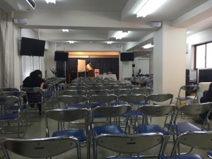 礼拝スタート! 賛美リーダーは漆間さん。土曜にはお父さんと会います。