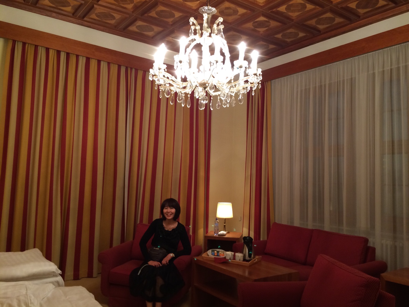 上・ブルノの教会でサリーさん作詞作曲 ノアの祈りをチェロを交えて賛美。 下・私たちのホテルのお部屋にはシャンでリヤが、みんな見学に来られました。 北アンテオケ教会