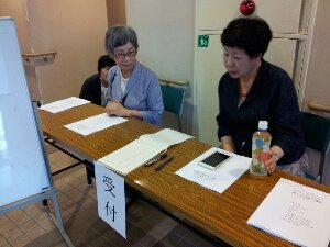 会場で用意をしています。受付は、中川さんとデボラさんのおふたり(^^)/