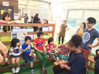 ジョイちゃんの歌をじっと聴いているお子さん!