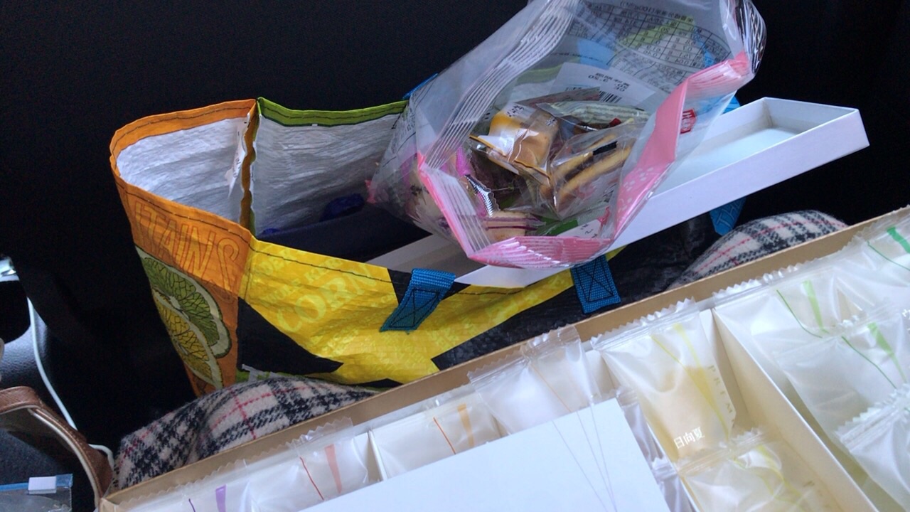車内は、お菓子タイム〜おまんじゅうに、チョコレートに、ゼリーなど満載であります。 Kハンナ