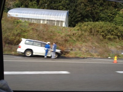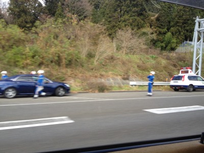 事故現場を通過中。今朝になって、1時間遅くしてよかったかもしれません。巻き込まれなくてよかったです。