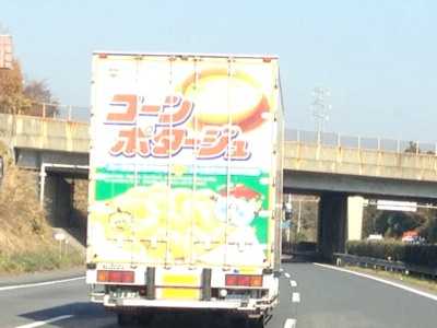 コーンポタージュの宣伝をし ているトラック。