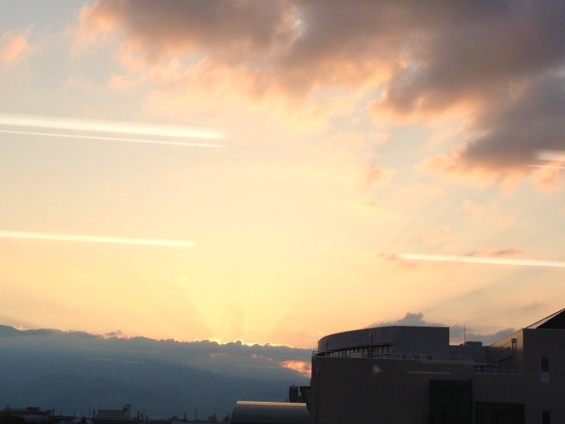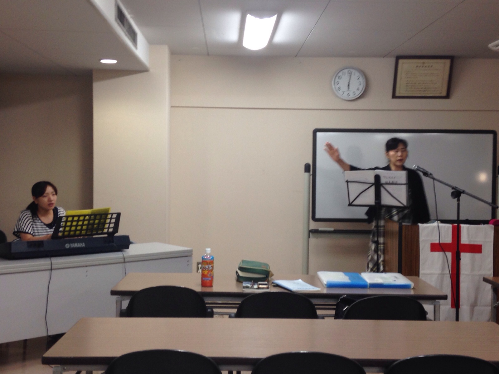 窓から夕暮れ時です。もうすぐ聖会が始まります。 Kobayashi