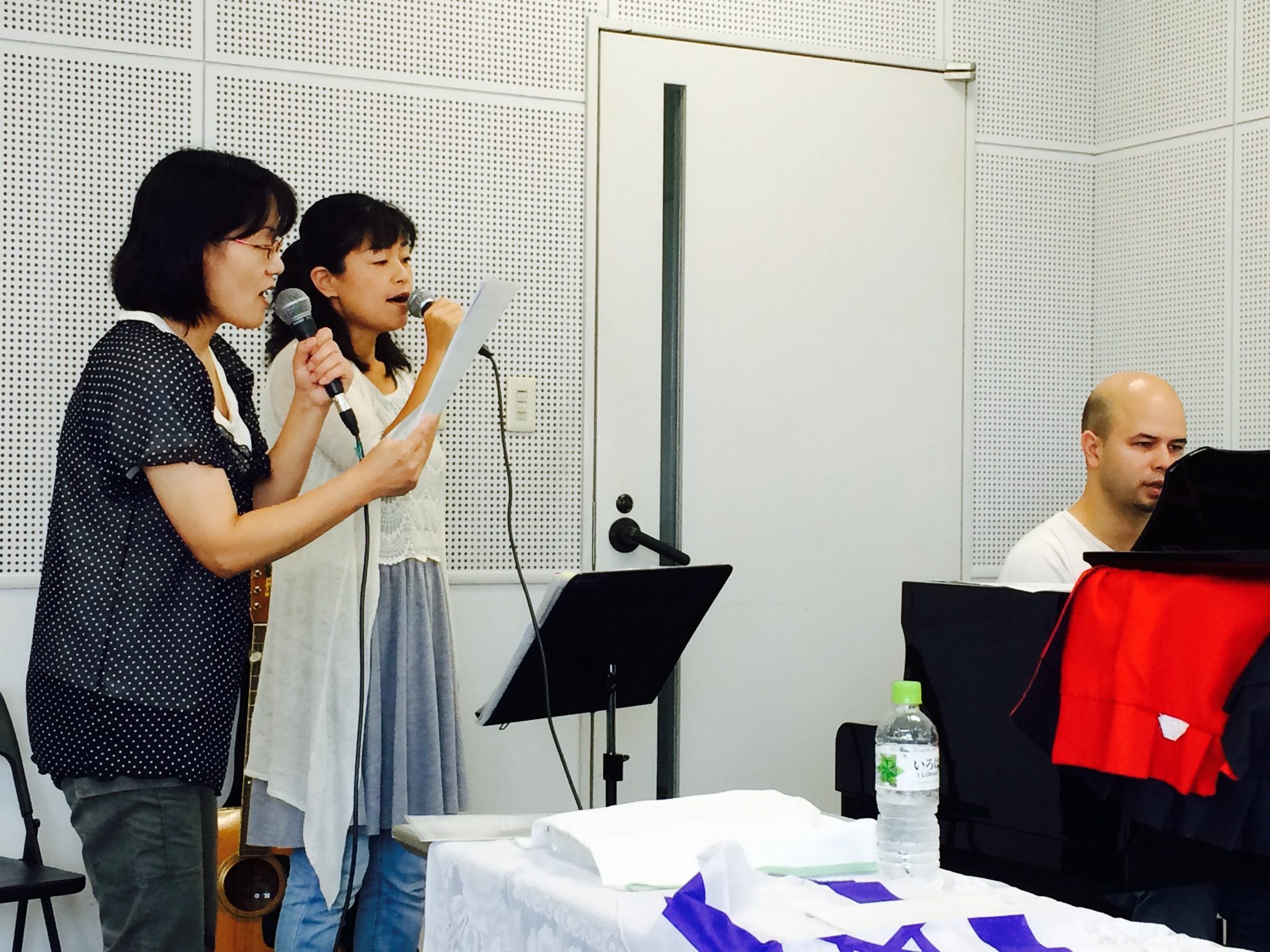 礼拝後に、聖会の特別賛美のため練習しています。