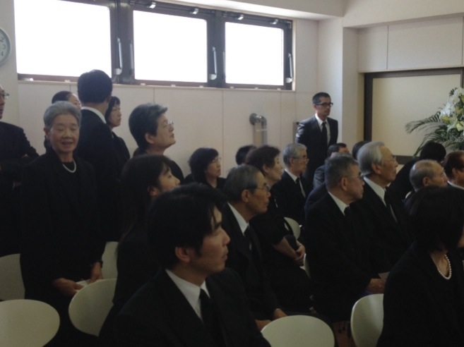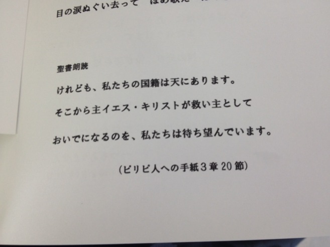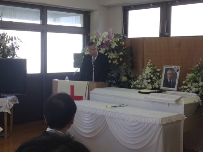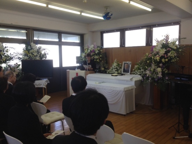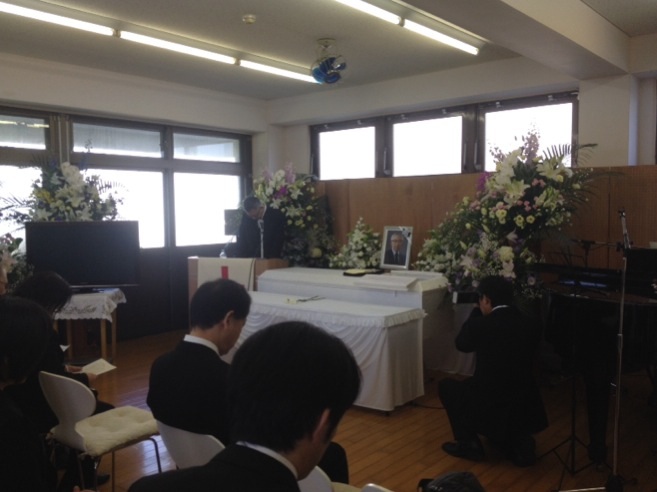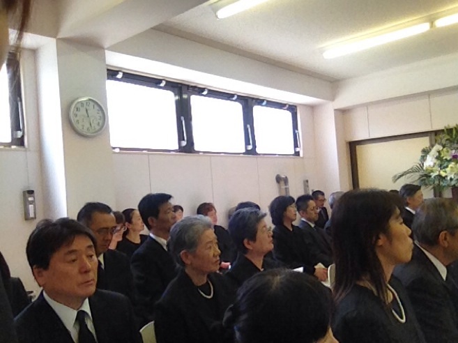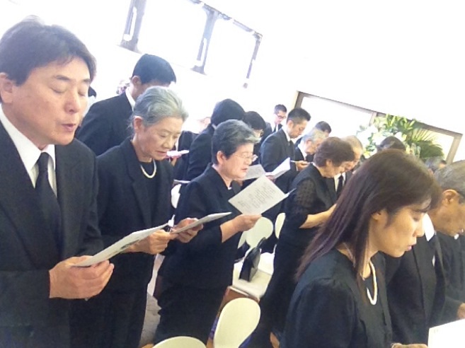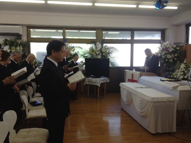 木村先生の召天式が始まりました。 会衆一同で「天の故郷」を賛美します。