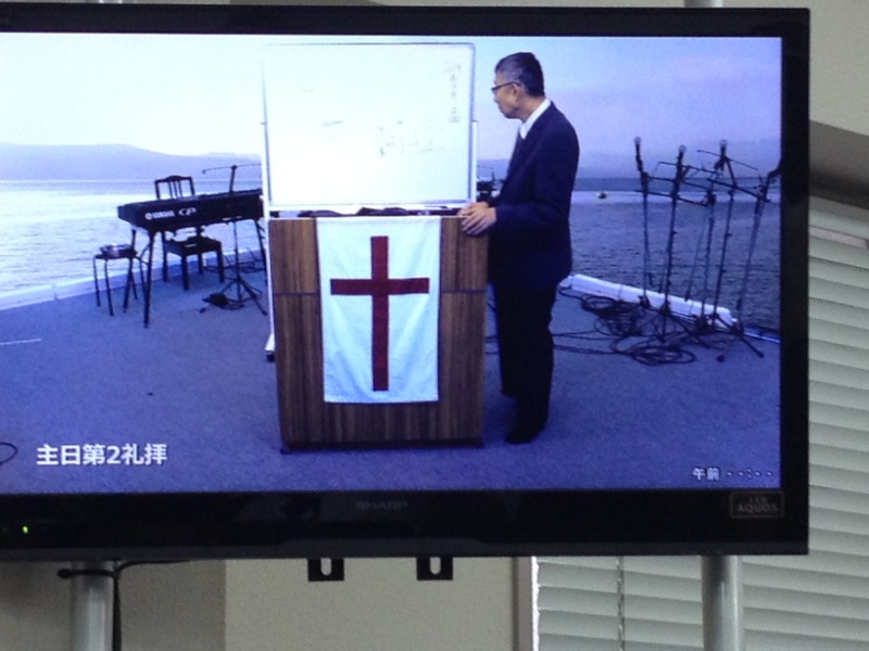 Clearでやすらぎの歌8集から「虹の空見上げて」を賛美しています。 聖なる神の都エルサレム教会(弘前)