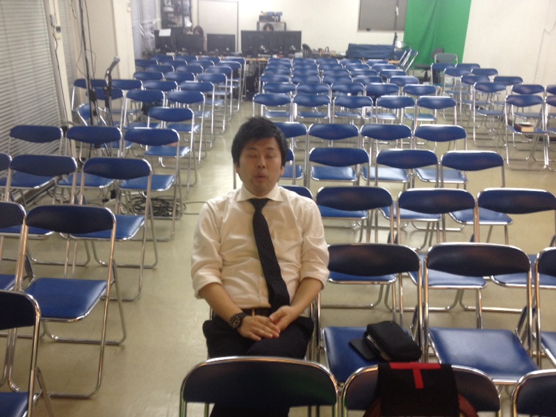 藤田さんは岩手出身。今日のライブ用に準備したチラシを撮っています。