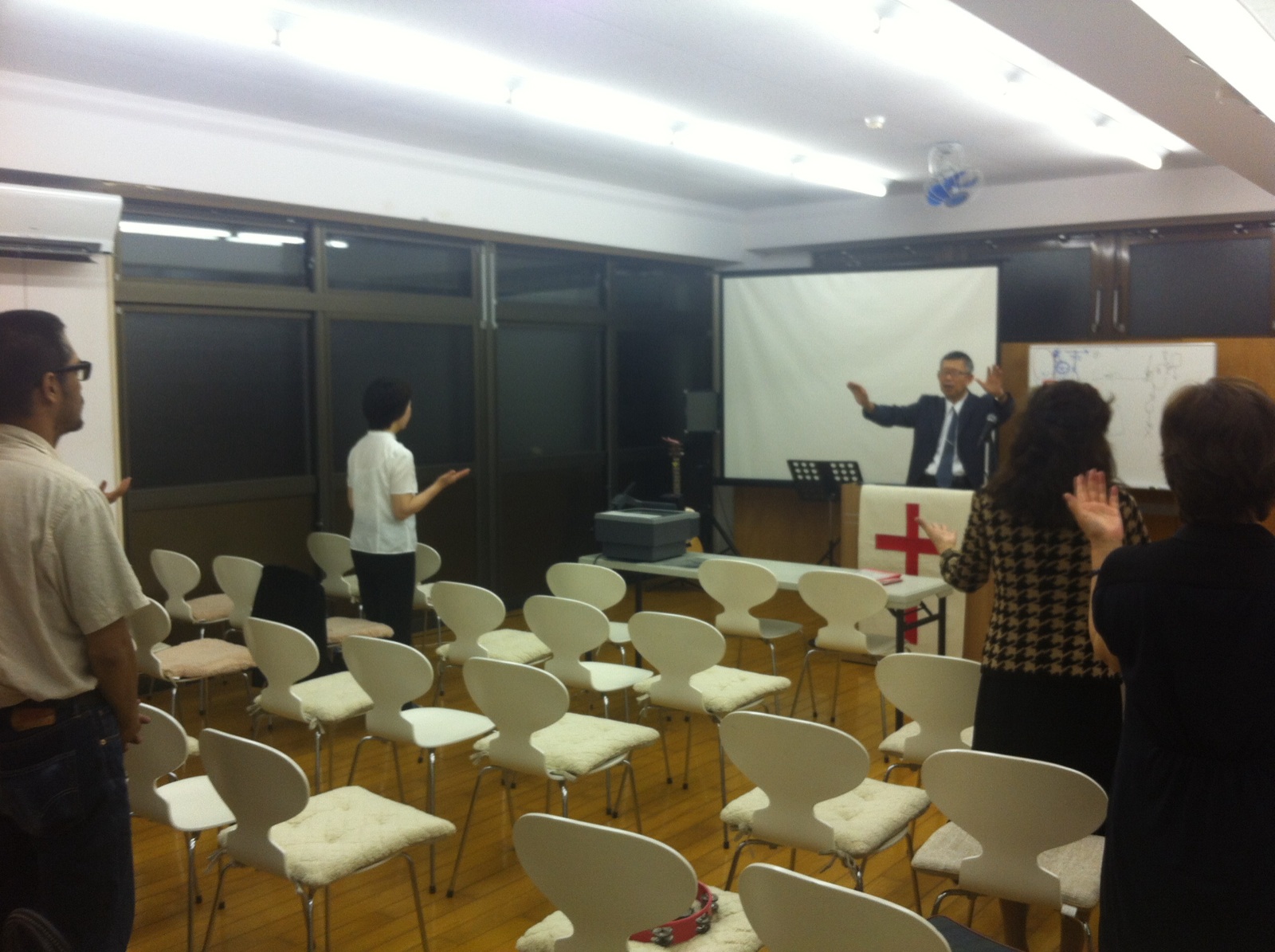 聖会の最後、一人ひとり、東京アンテオケ教会の牧師であられる秋元さんに祈っていただく事ができます。