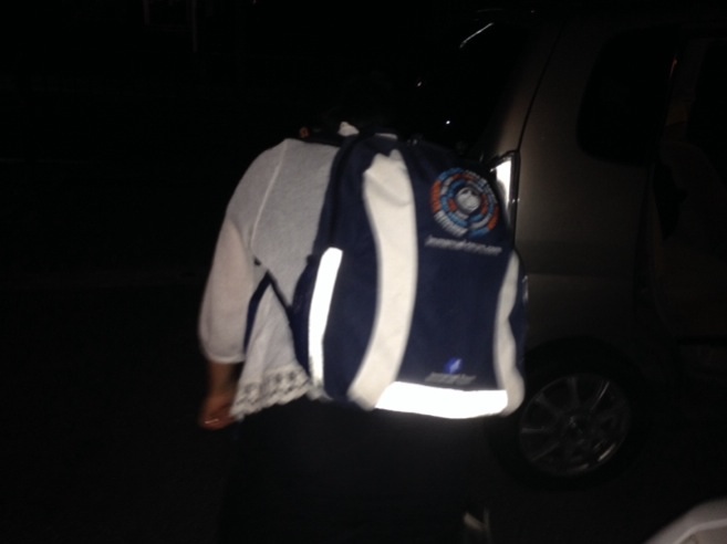 ハンナさん、インマヌエルツアーのリュックを背負ってました! 移動するだけでイスラエルチームの宣伝に!