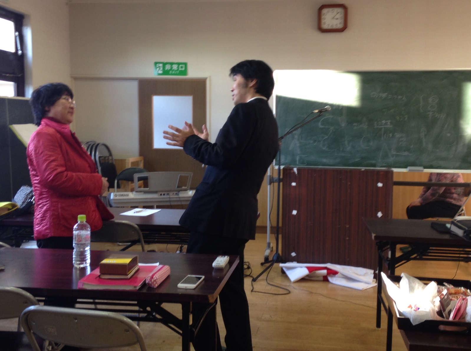 三沢聖会ごは、秋元さんに皆さん順番に祈っていただきました。