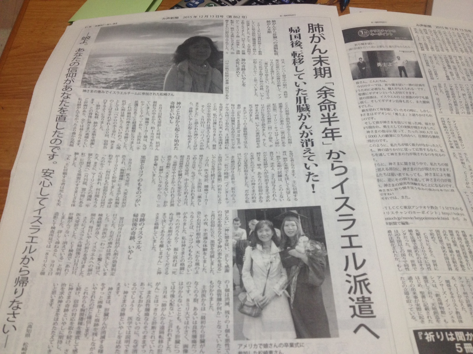 み声新聞の記事の末期ガンのいやし、神様は素晴らしい! 東フィラデルフィヤ教会 シオン