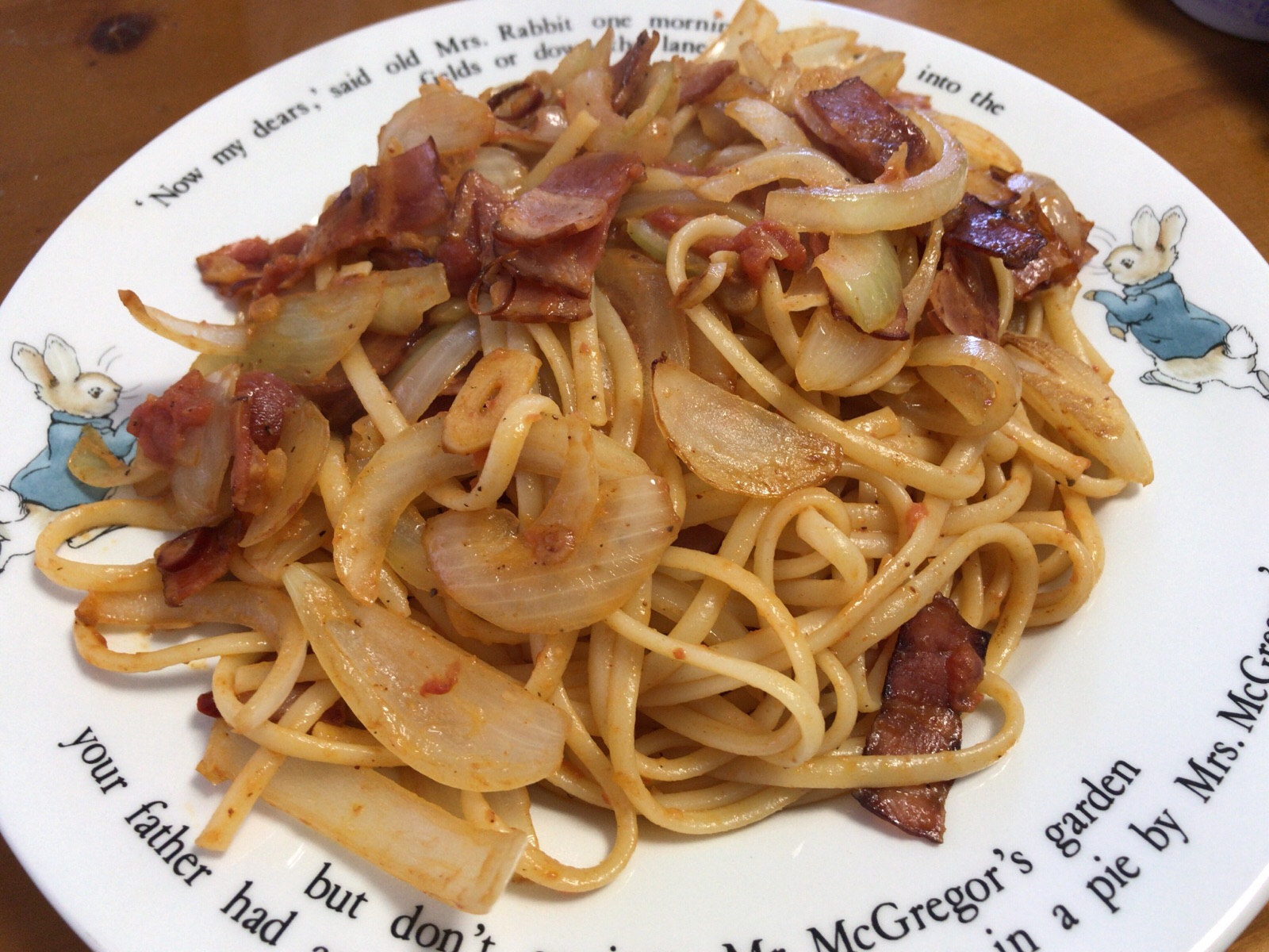 冷蔵庫の中に玉ねぎだけがあったので… 朝からパスタに…! ただ鷹の爪をこれでもか〜と投入…?! amagai