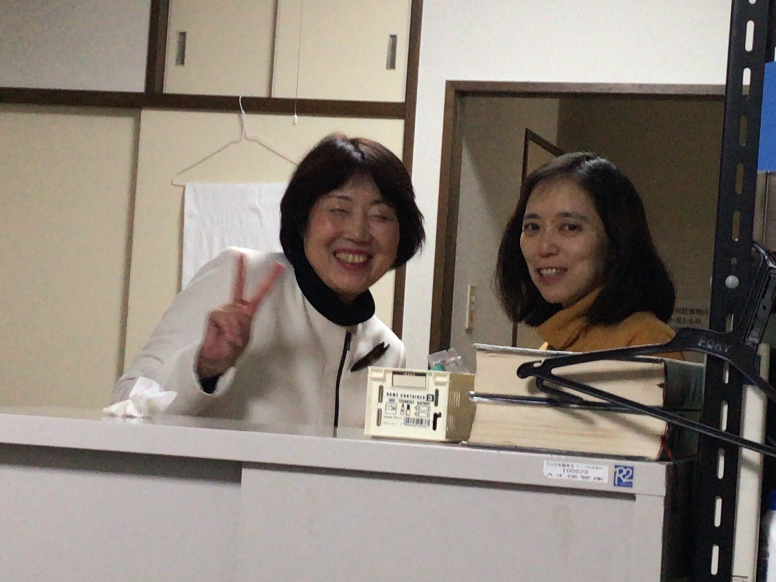 イスラエルチームの荷物の準備かーまだというお二人、山室軍平さんの映画をいつ見に行けるかなとお話中。 kato