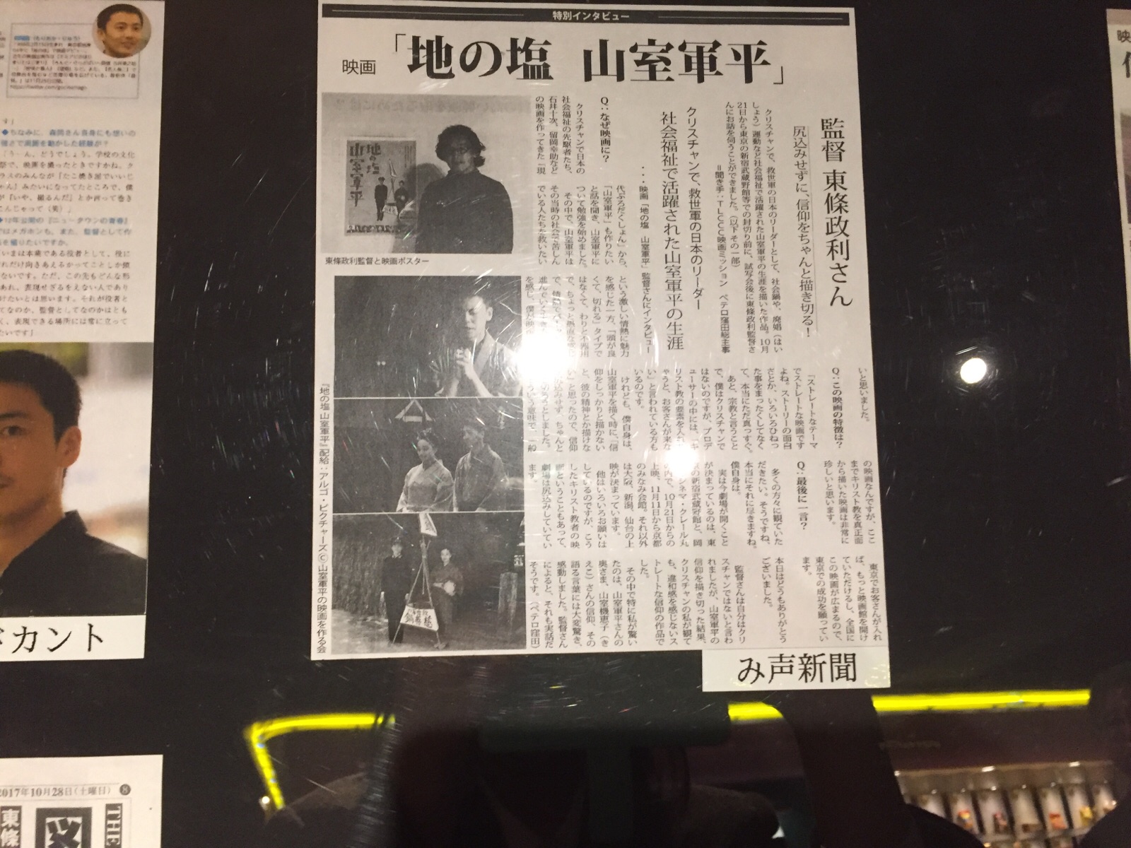 映画の解説ボードの中に、窪田さんが書いたみ声新聞の記事の切り抜きが。Joy.m