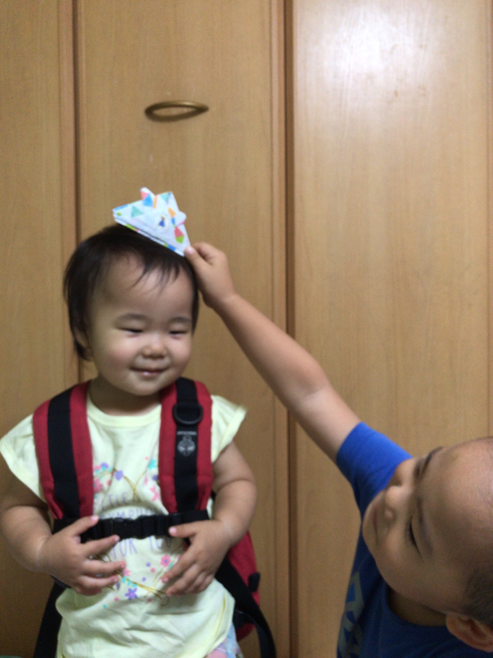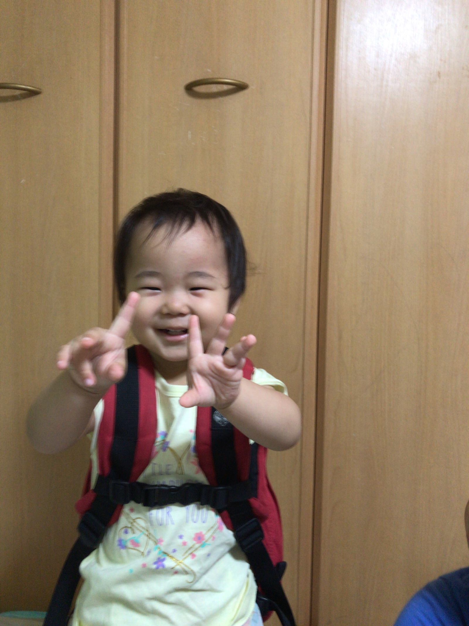 2歳になりました。きっと今年、ことばを覚えて賛美する日も。兄のリュックを持って喜んでいます。