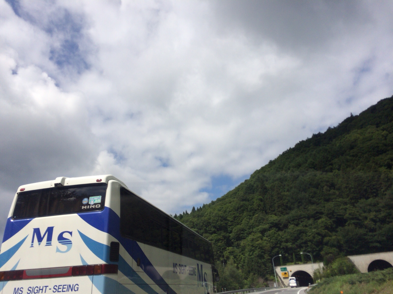 観光バスでしょうか。 白馬キャンプの雰囲気感じますね!