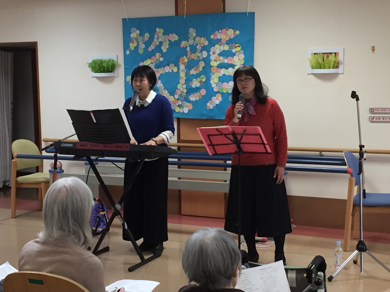今日は新百合ケ丘の老人施設へ行きます。2回目です。 ”笑顔”。この壁をバックに歌います Joy