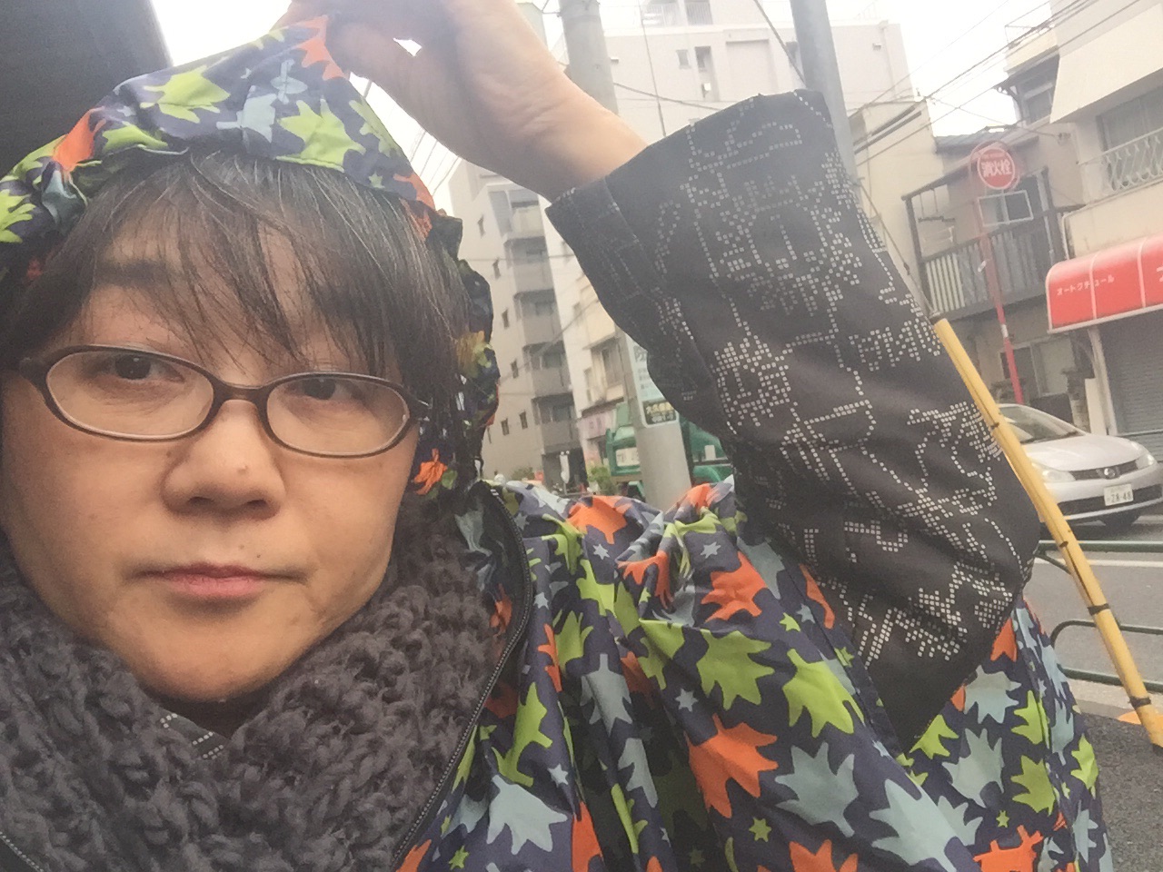 遅れそうなので、カッパ着て自転車で教会へ。Joy