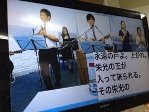 今度は森牧師が賛美リーダーで賛美をします。ダビデくんもギターで賛美します。