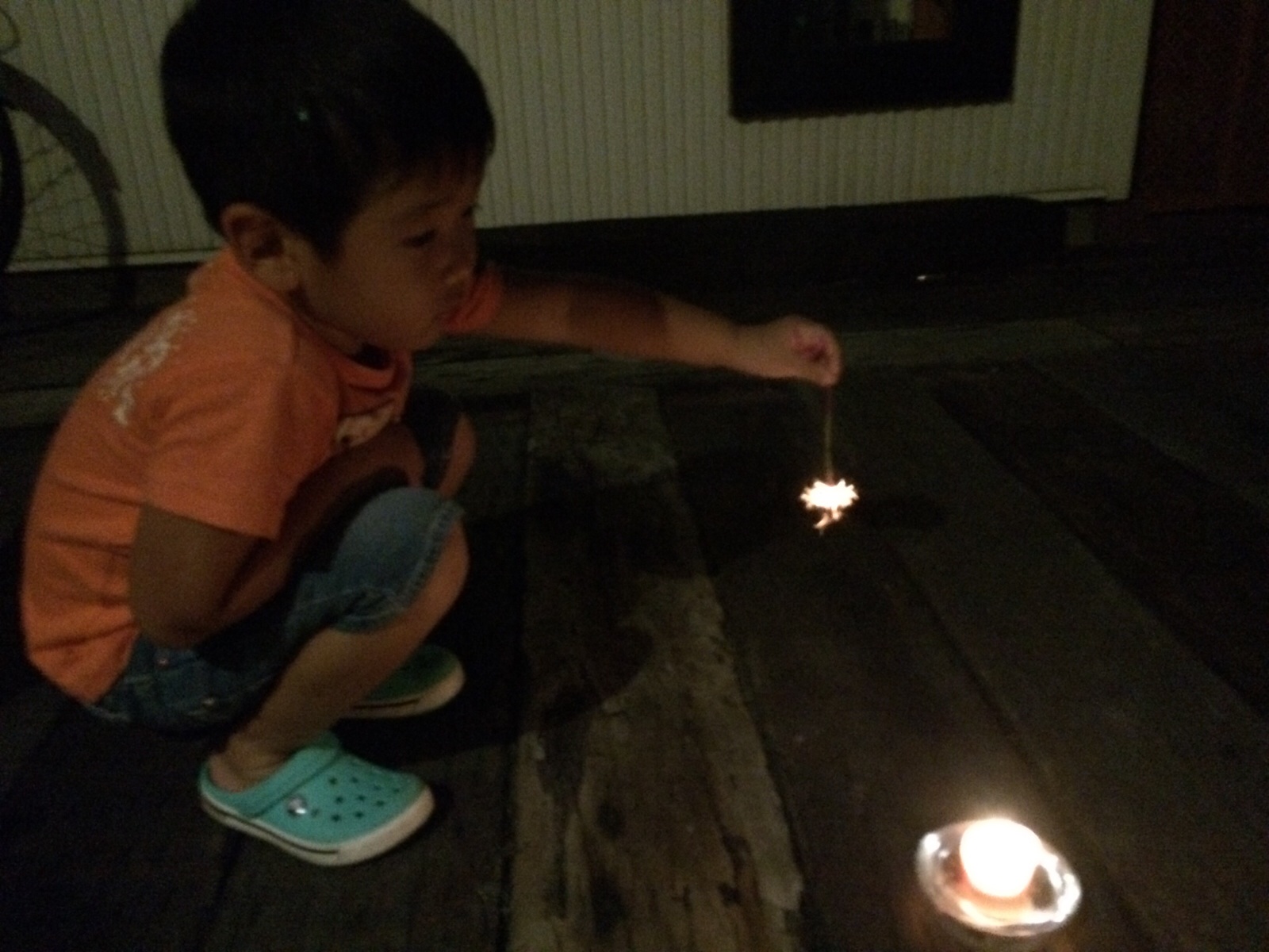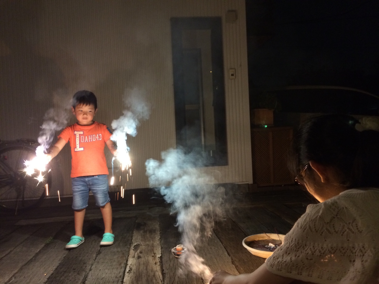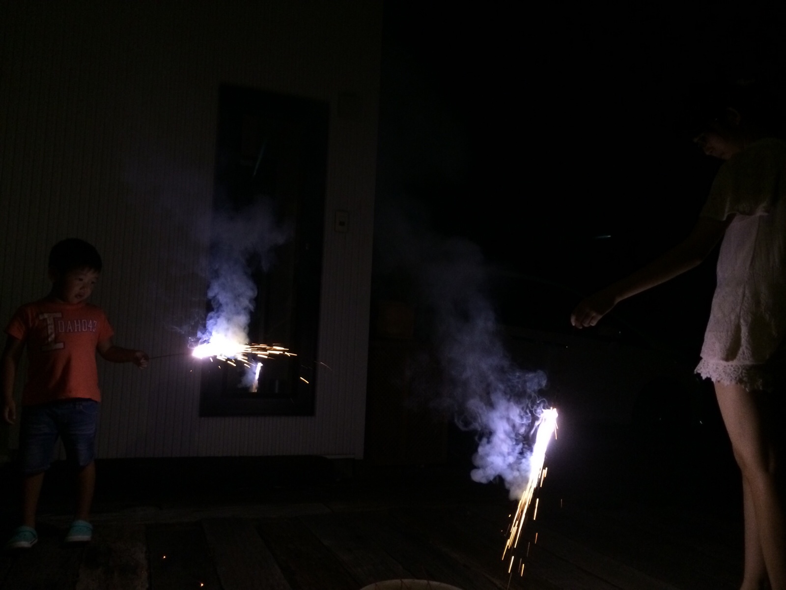 甥っ子と姪っ子と花火してます。 ミカエル
