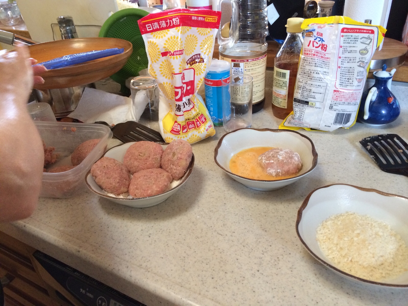 コロッケ作ってます。 肉が多いなー。 ミカエル