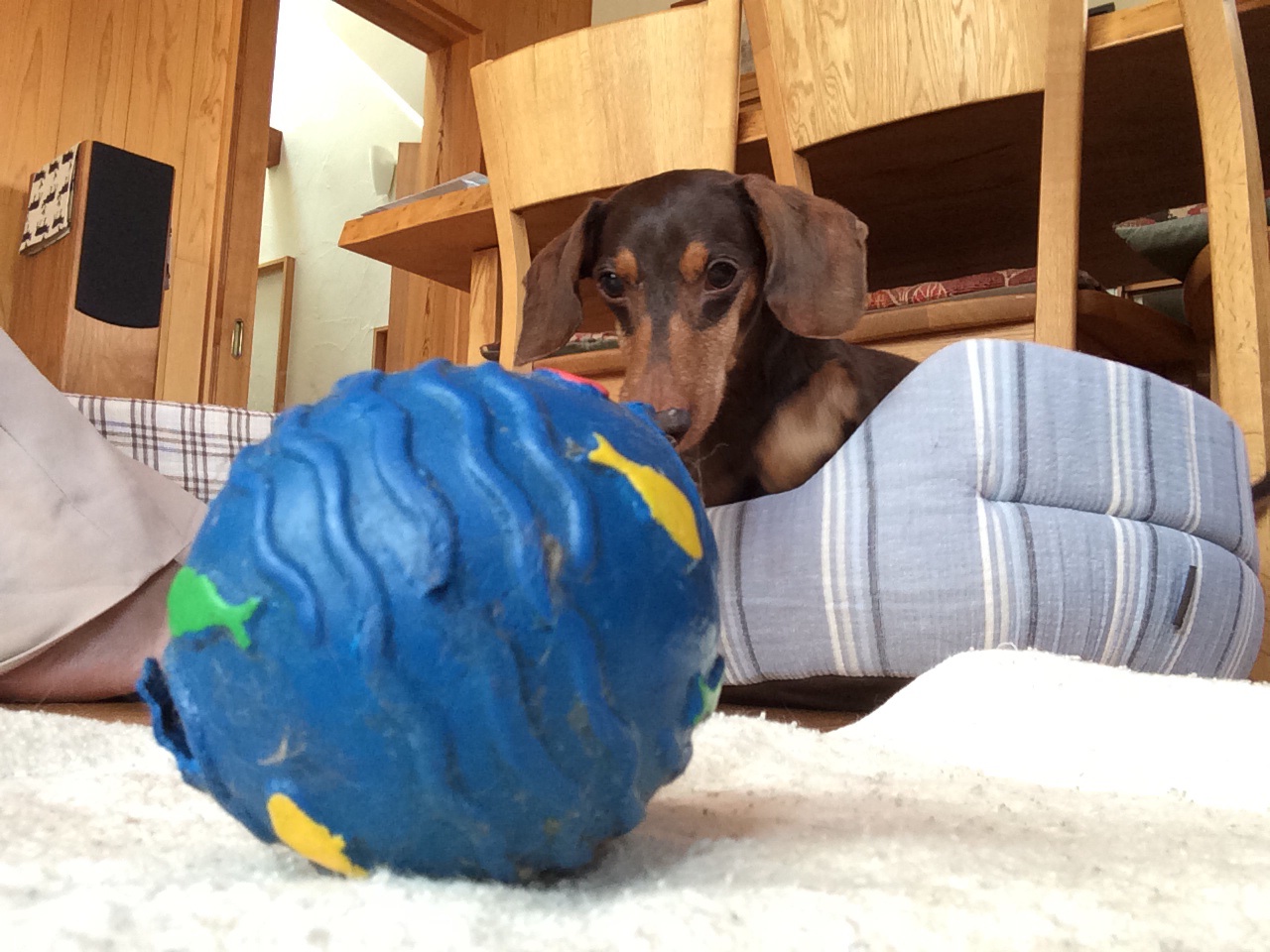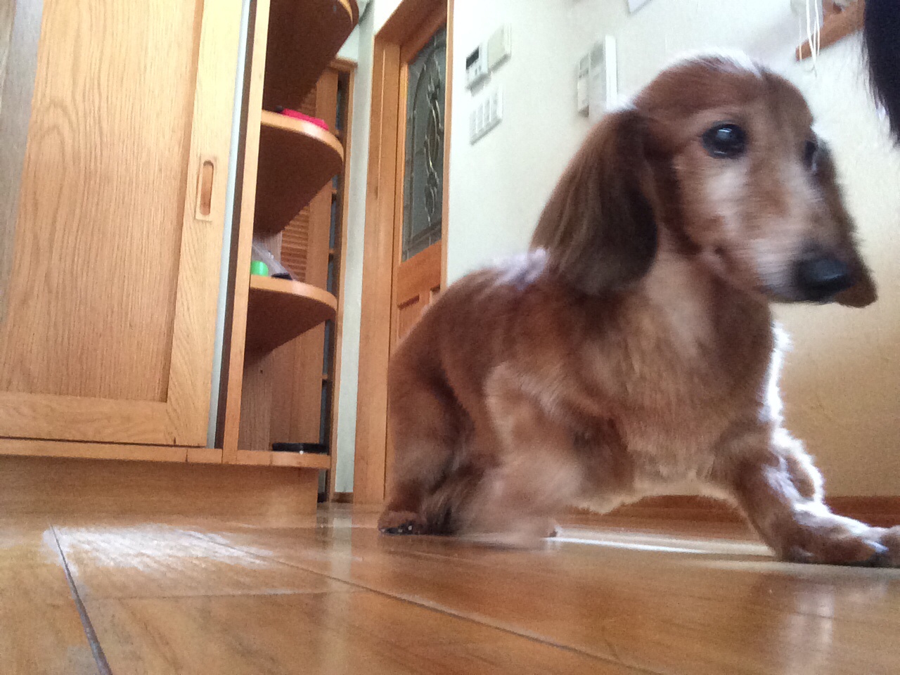 カイくん、床で滑っちゃいました。 弟家族は、今日、伊豆から帰って来ます。 ミカエル