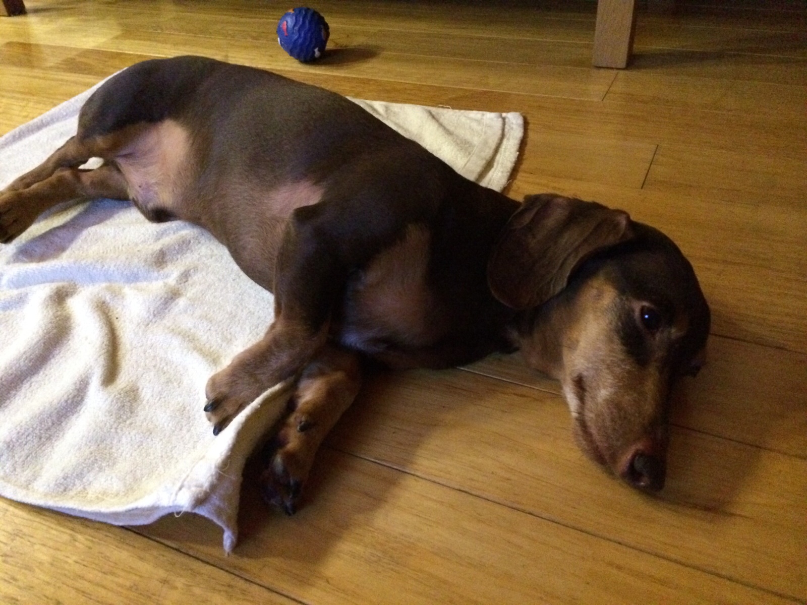 ファミリーデイキャンプから帰って来たソラ。ちょっとお疲れ。 と思ったら、