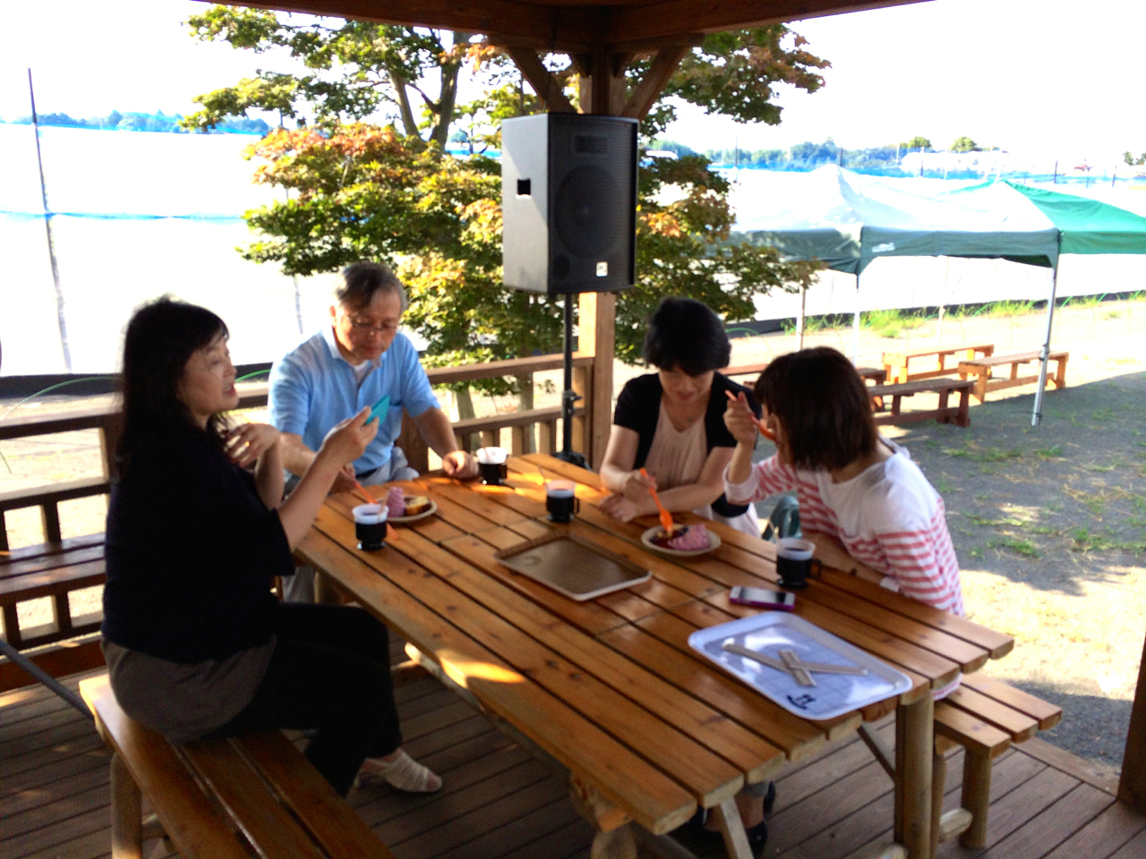 ベリー狩りを楽しんで頂いた後は、カフェで休憩。ケーキ屋さんとのコラボメニュー、スペシャルプレートが来ると同時にパシャパシャ!ウワサ通りのブロガーさん! 本物です!(笑)