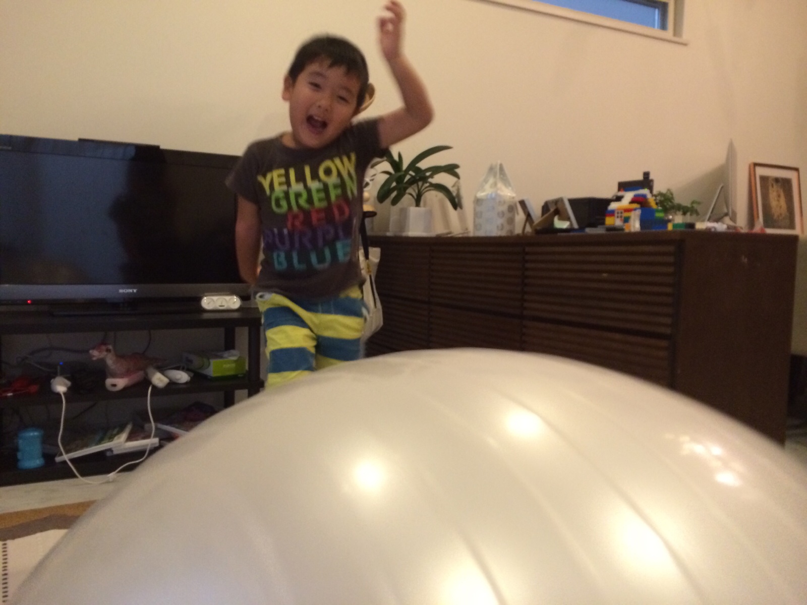 乗ってバランスを取って、身体を鍛えるボール。 ミカエル
