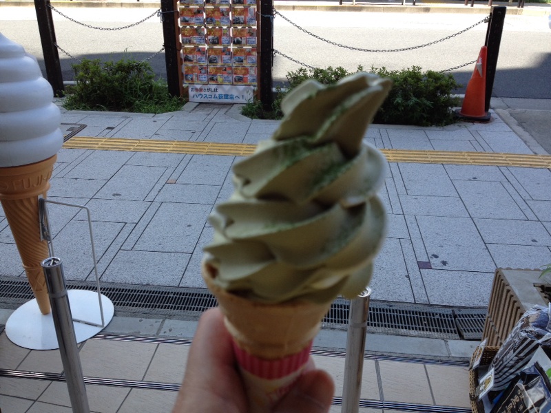 出かけた先にお茶屋さんで、抹茶のソフトクリームを見つけ、暑さに負けて買ってしまいました。 お味の方は、想像とはちょっと違っていました。 imamura