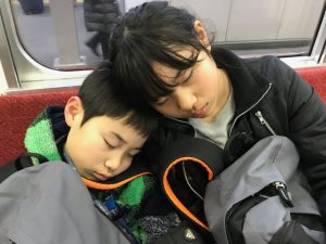 準備→東京→新幹線乗車までを2人だけに任せたところ、かなり緊張した様子。ばあばと無事合流したところで一気に疲れが出たようです(^^)