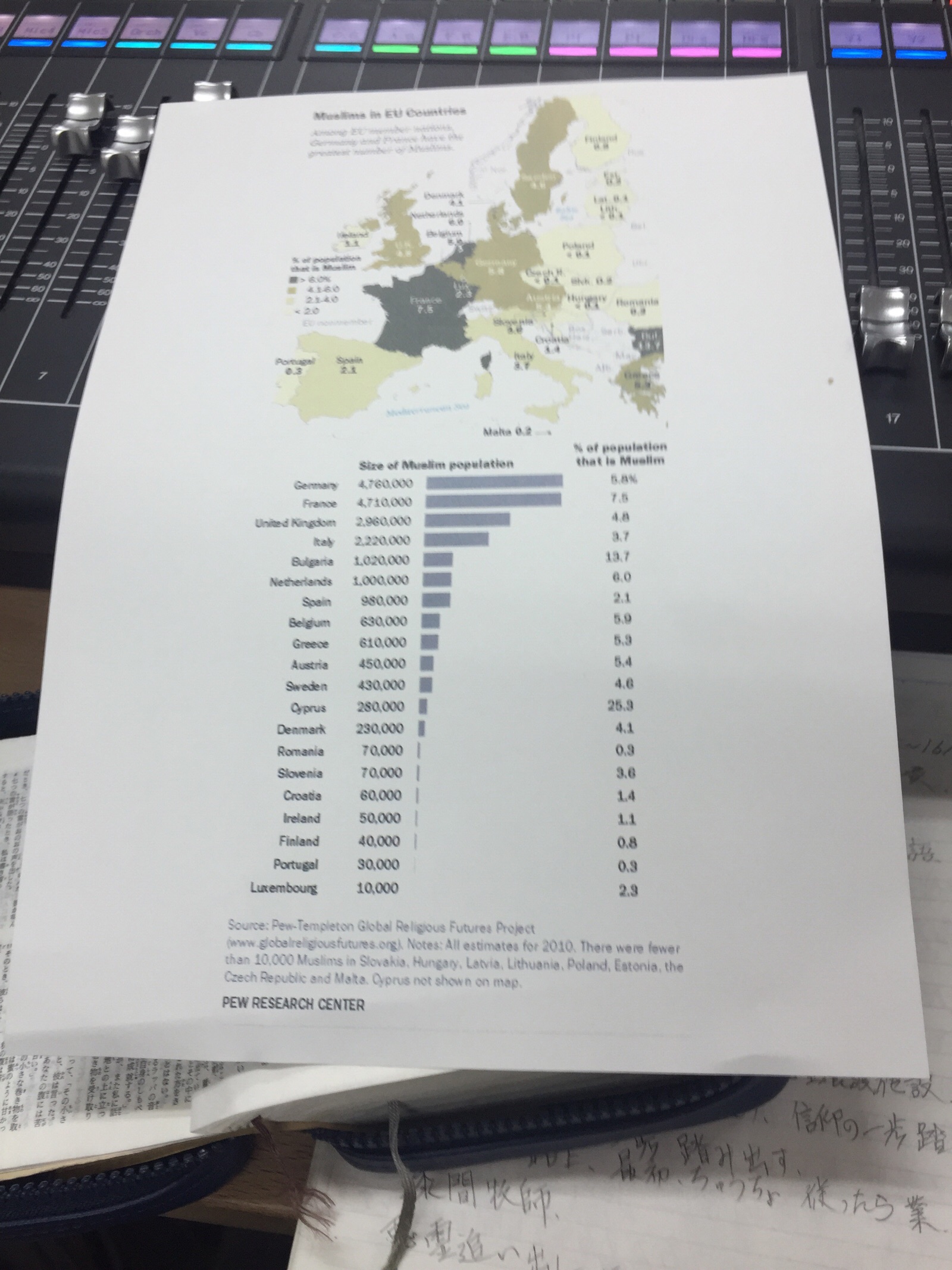 アメリカのピューリサーチセンターがイスラムの増加率を調査したデータです。
