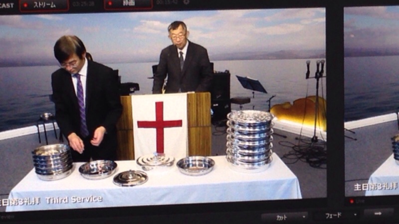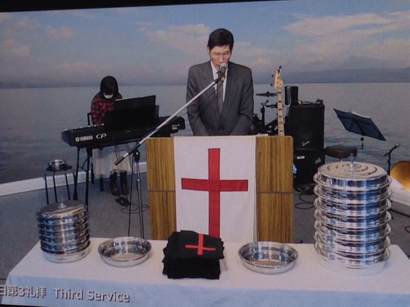 牧師賛美前、オーケストラの皆さん、備えてます。