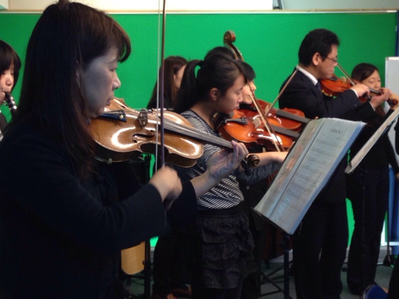 オーケストラのバイオリン奏楽に賛美ちゃんもいます(^^)