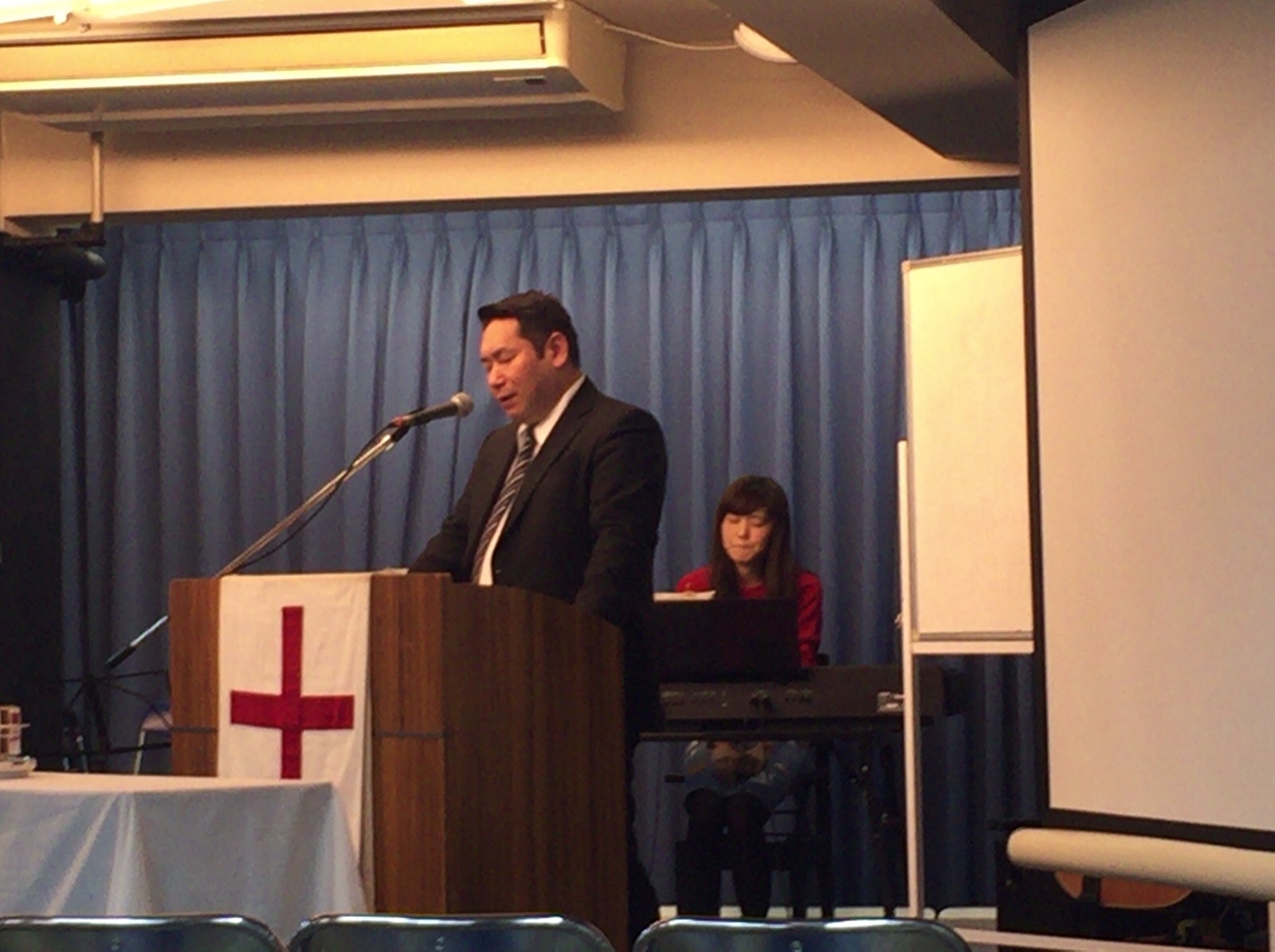 夜の土曜礼拝が始まりました。星名さん司会です!エステル