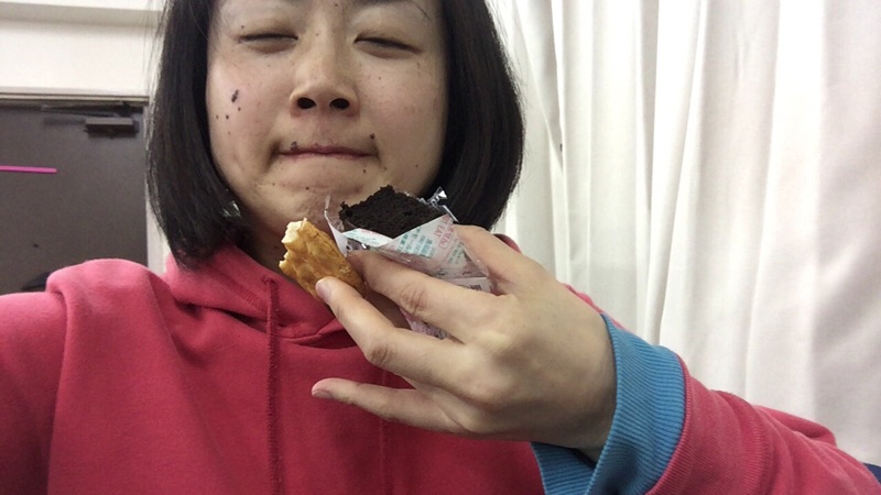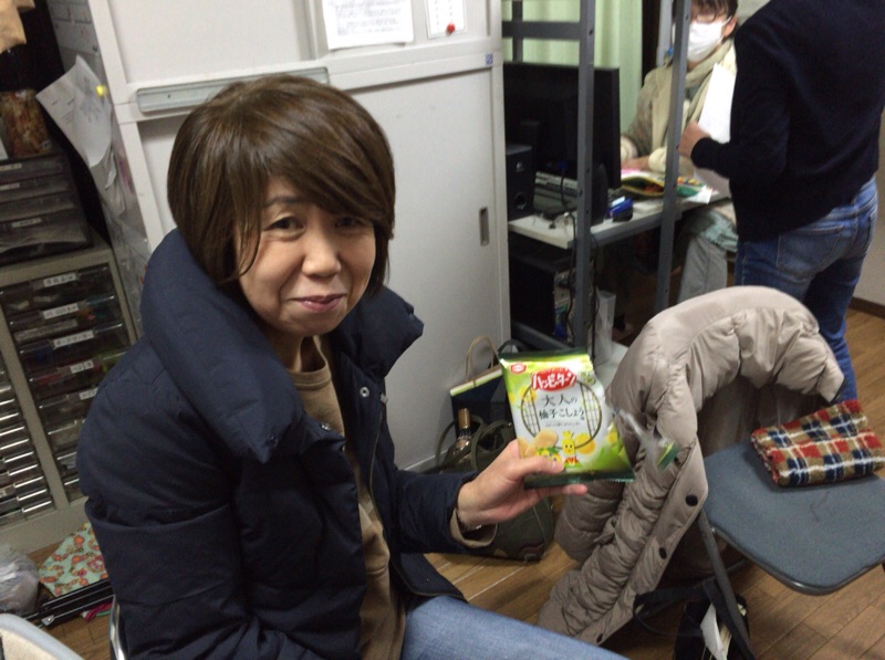 ますかわさんも来て、お煎餅とチョコケーキをいただきました! ラッキーです! やまなか