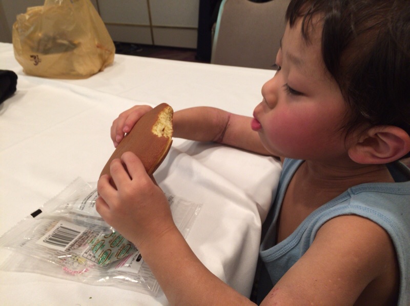 大好きなどらやきを食べてるよっちゃんです♪ 大きなどらやき!