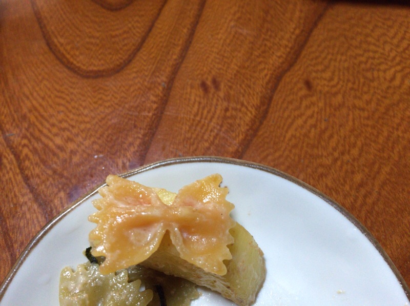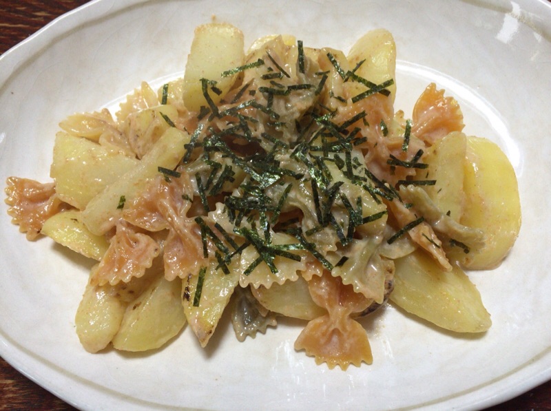パスタとソースの賞味期限が過ぎていたと言う事で、芽が出ていたジャガイモをまぜて、出来上がりました♪ やまなか