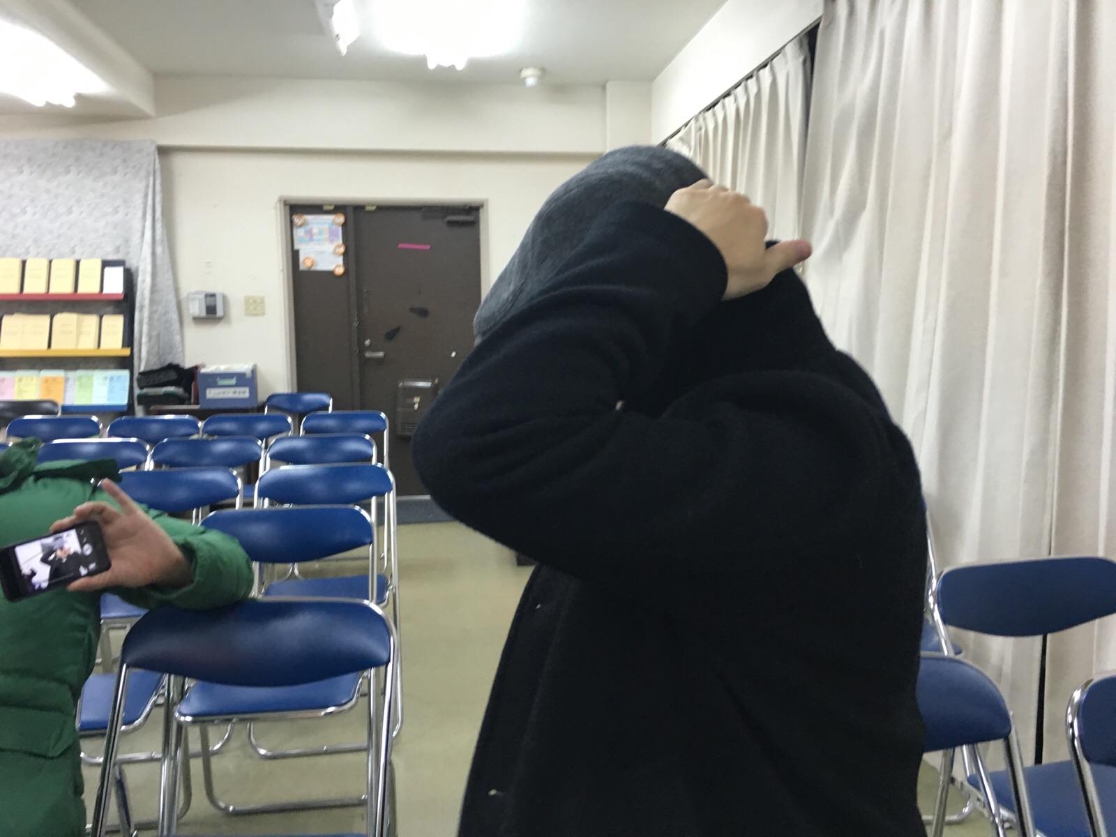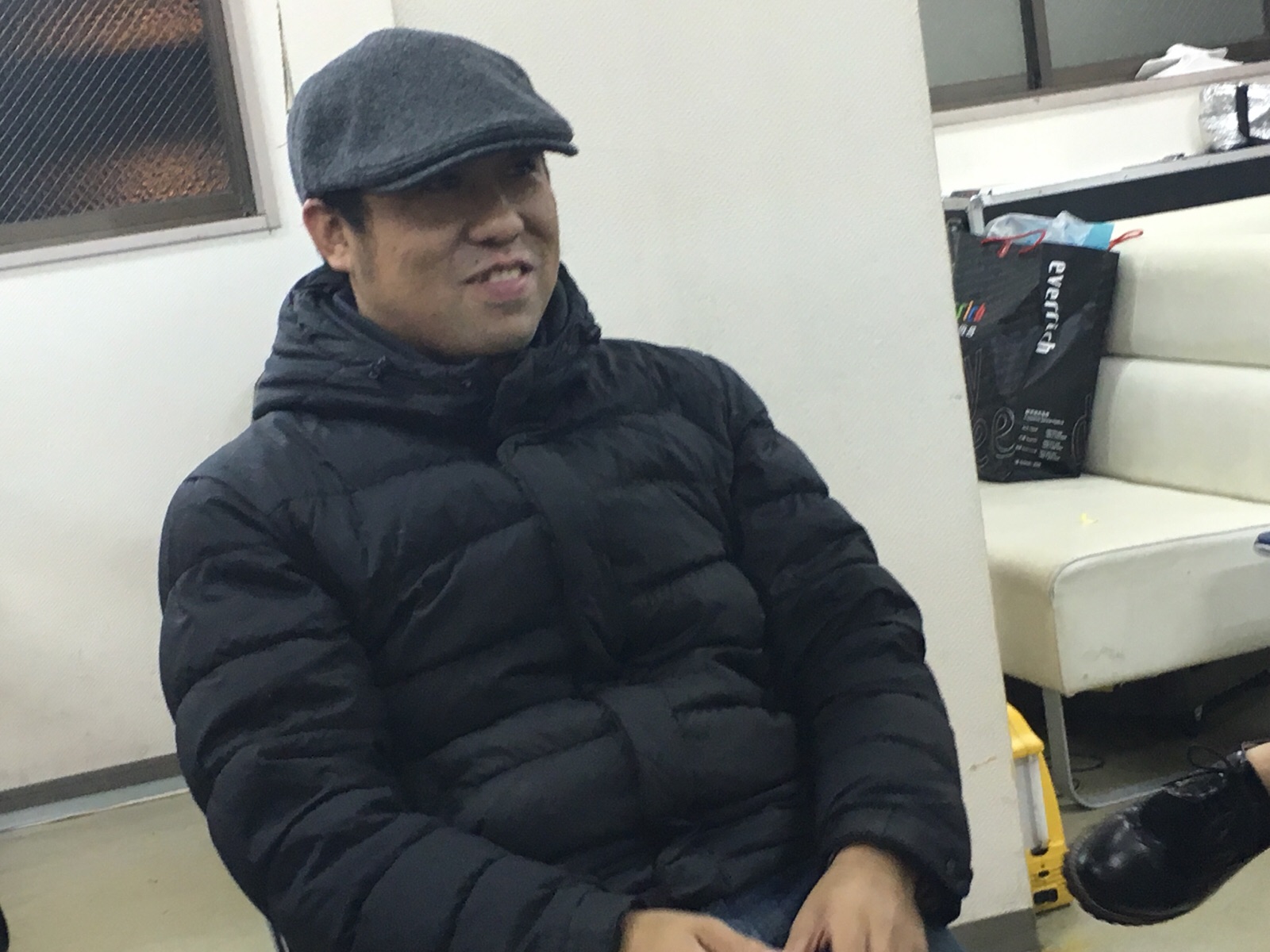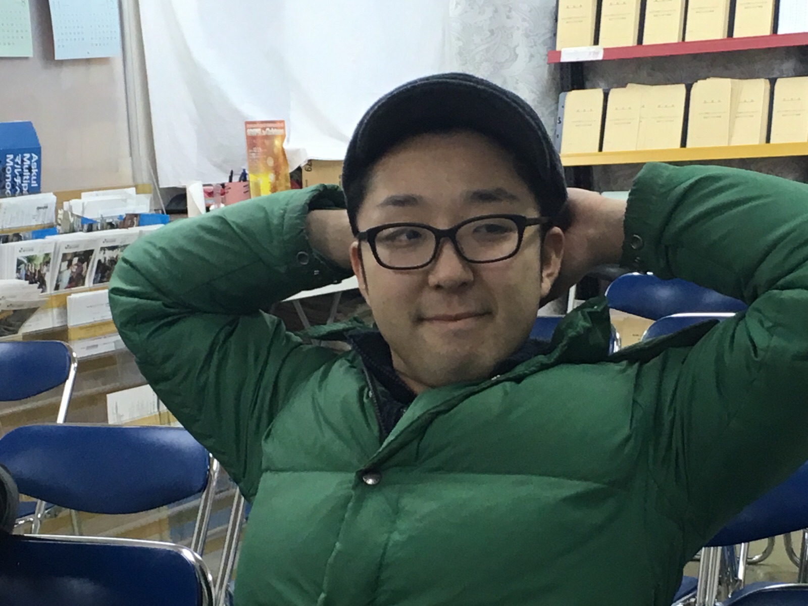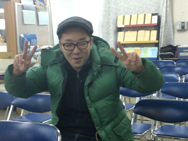 まずヒサさんが被ってみました! どうでしょうか? みんな、あ〜こういう人いるよな〜と言ってました。 Kayano