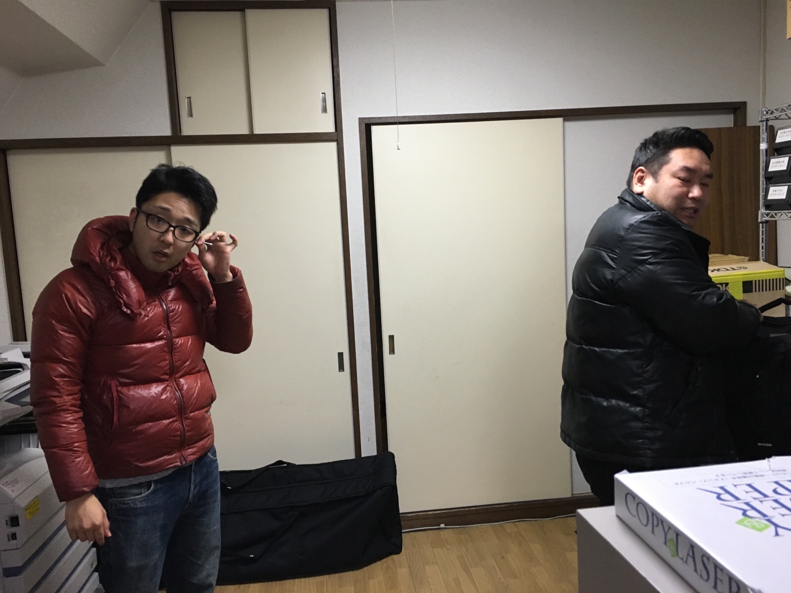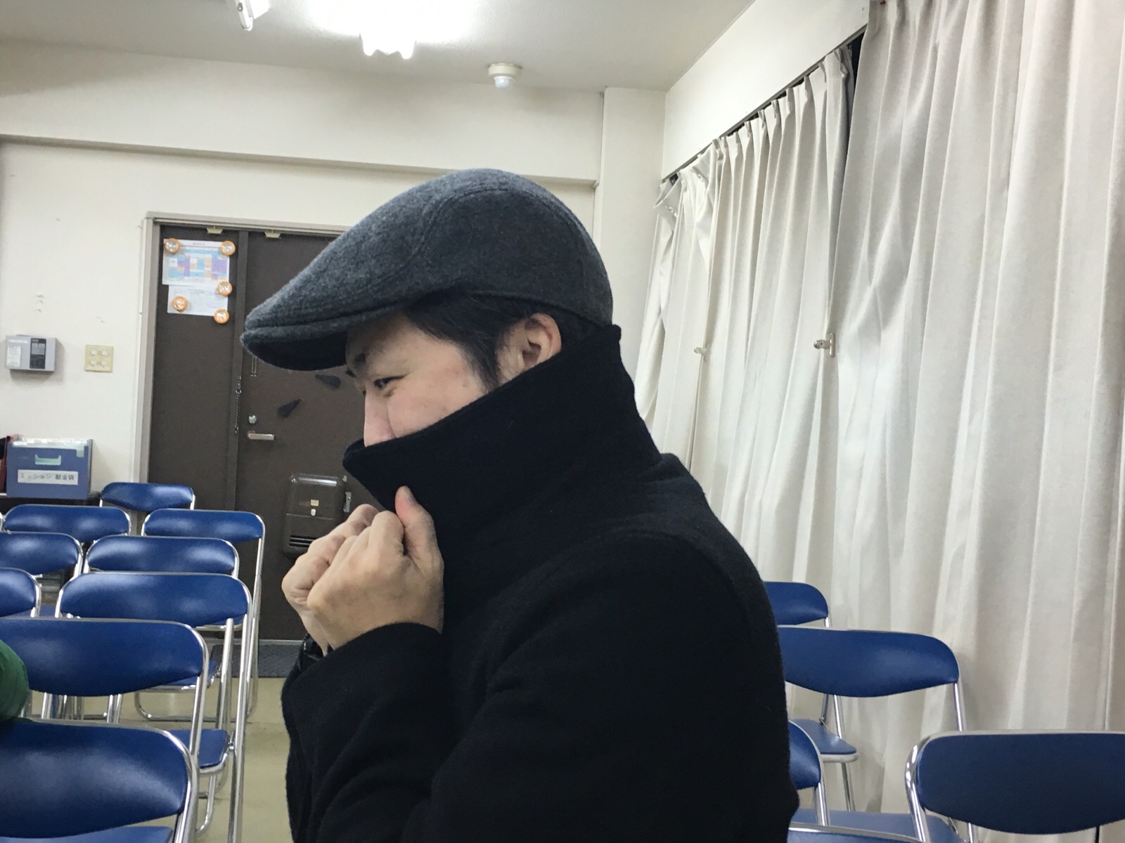 こころごすぺるのミーティングの後の真境名さんとヨハネ君。 教会事務所にて Kayano