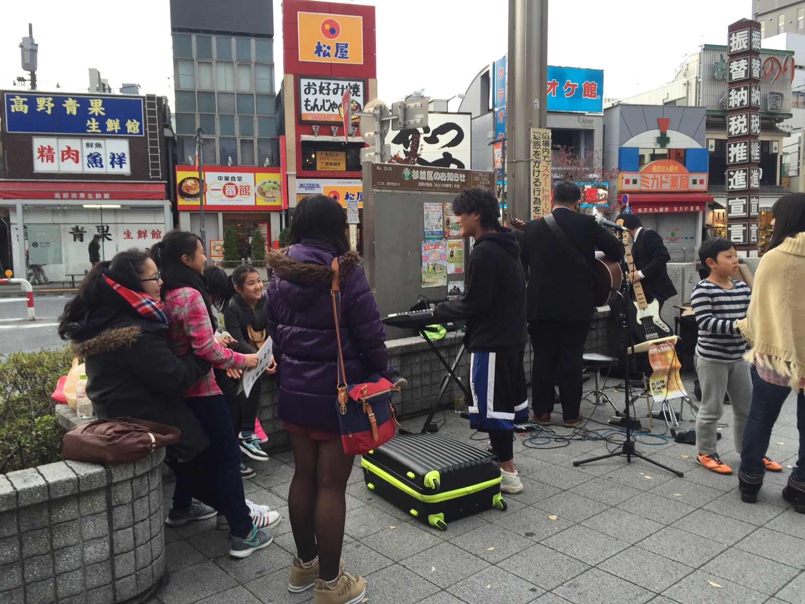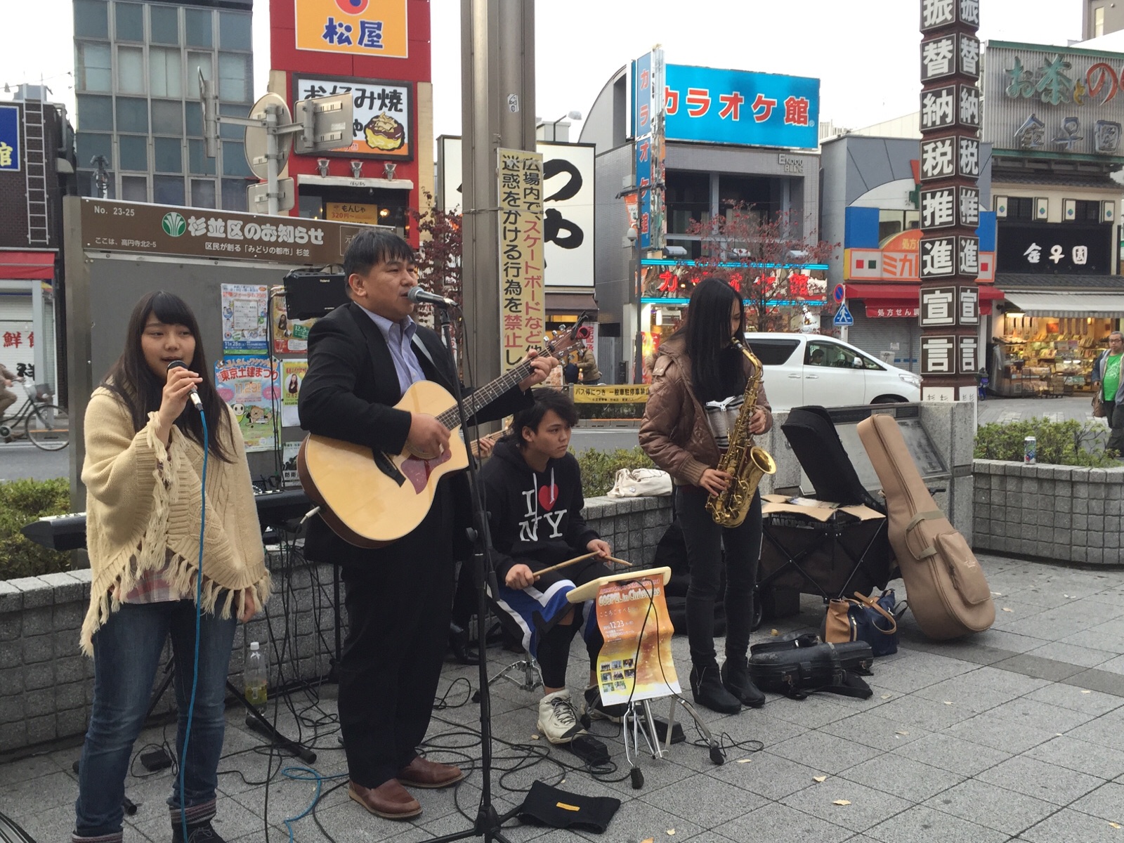 こころごすぺるコンサートの宣伝路上ライブとチラシ配りが行われました。北口は、Come & Worshipの皆様。沢山の方々の注目をあぴていました。